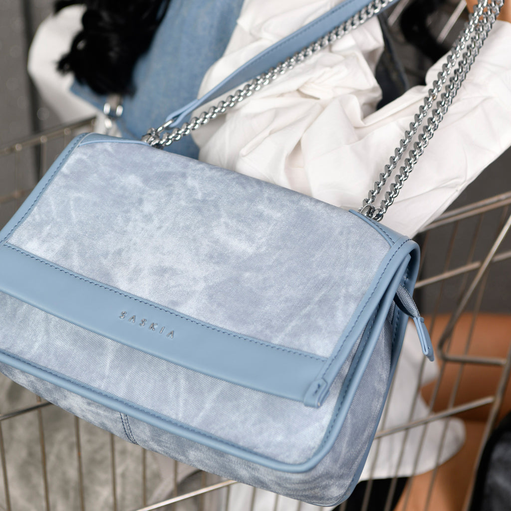 The Minji Blue PU Crossbody (pictured) offers both style and versatility. Crafted from breezy PU leather, this bag adds a touch of fun and sophistication to any outfit.
